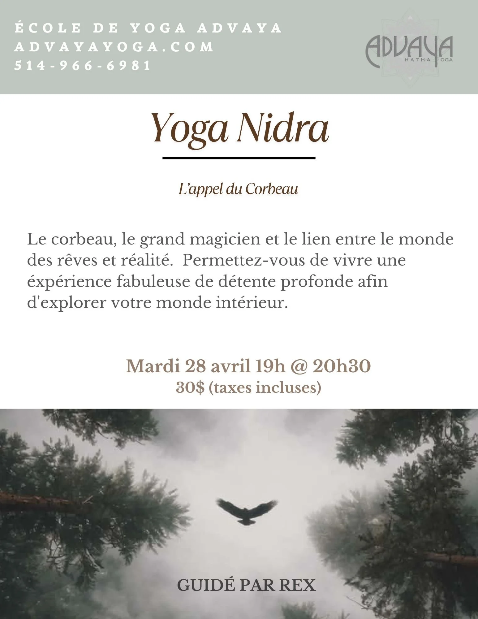 Méthode de paiement: par virement électronique à : advayayoga.com@gmail.com
